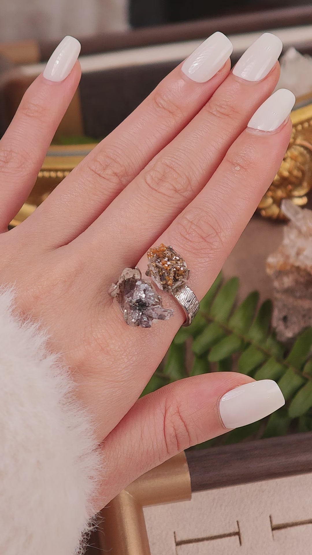 I personally collect the minerals from different locations around the world, carefully trim the edges, and hand-set each stone into an adjustable open ring band, making it suitable for all ring sizes.